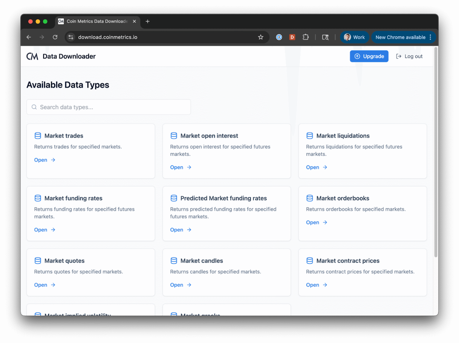With the Data Downloader at [download.coinmetrics.io](https://download.coinmetrics.io/), traders, researchers, and analysts can quickly retrieve large datasets directly from their browser in convenient formats like CSV, line-delimited JSON, or Apache Parquet. Whether you’re backtesting strategies, building models, or conducting research, the Data Downloader provides a faster, more intuitive way to get the data you need.