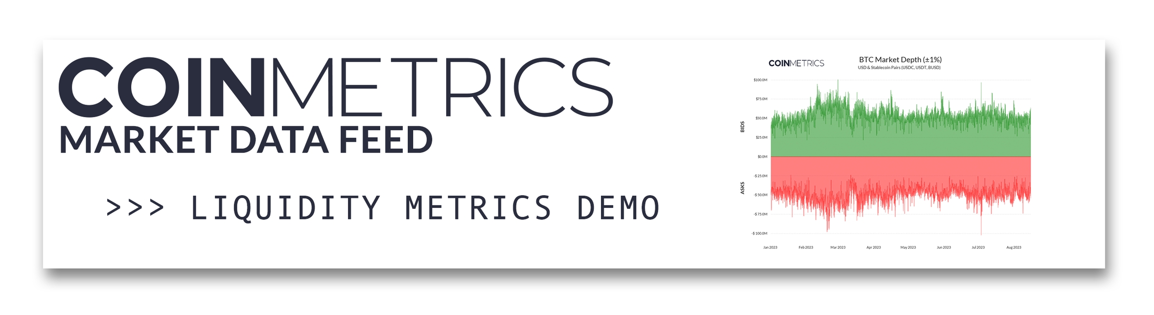 A liquid order book (the collection of outstanding bids and asks for a market) is a necessary component of a mature financial asset. The ability to quickly enter and exit large positions with a small degree of price impact, or slippage, is a desirable feature for institutional market participants. Coin Metrics has been collecting order book snapshots for major crypto assets since 2019, and recently launched new liquidity metrics as part of our Market Data Feed offering to further enhance institutions’ view of the crypto markets. In this demo, we explore how these metrics can be used to quantify and aggregate order book depth across some of the most actively-traded BTC markets.