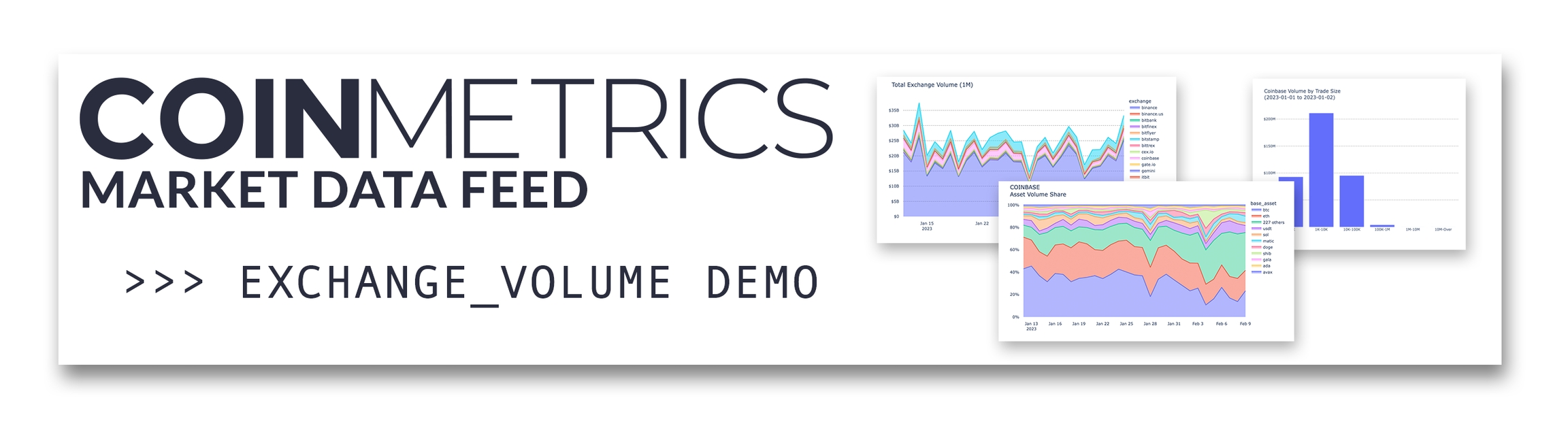 Coin Metrics creates aggregated metrics to allow users to easily compare the total trading volume of dominant centralized exchanges. By leveraging the timeseries/exchange-metrics endpoint, we can retrieve the daily reported spot trading volume for a single trading venue or a list of exchanges.